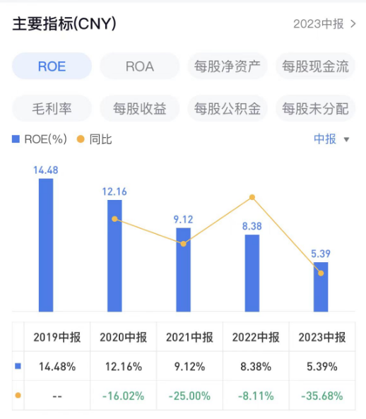 2023上半年,建霖家居ROE下滑至5.39%。拉长时间线来看,建霖家居ROE四连降。2019上半年、2020上半年、2021上半年及2022上半年,建霖家居ROE分别为14.48%、12.16%、9.12%及8.38%。
