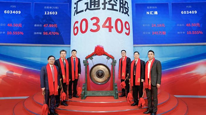 上市首日(3月4日),汇通控股的开盘价为48.50%,盘中一度涨至77.77%,但收报50.81%,较发行价上涨110.13%,但较盘中最高价则下跌34.67%,总市值约为64亿元。