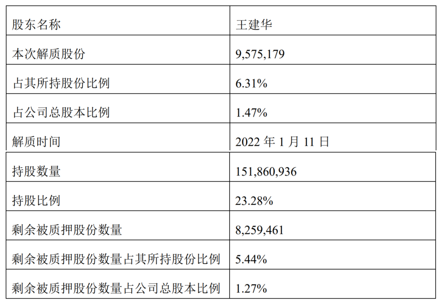 公告显示,近日公司接到控股股东、实际控制人王建华关于股份解除质押的通知书,王建华将其质押给中国国际金融股份有限公司的合计9,575,179股无限售条件流通股解除质押,占鼎信通讯总股本比例为1.47%。