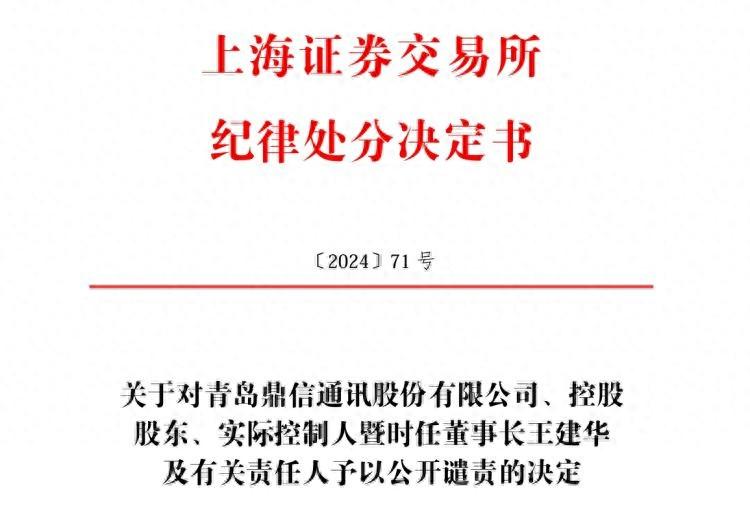 上交所官网4月29日消息,鼎信通讯(603421)其控股股东、实控人暨时任董事长王建华、时任总经理曾繁忆、时任董事会秘书葛军、时任副总经理袁志双被予以公开谴责。
