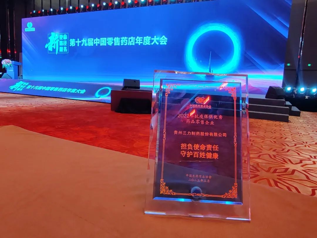 贵州三力制药股份有限公司荣获“2022年抗疫保供优秀药品零售企业”的荣誉。在疫情期间,我们全力以赴保障供应,坚守防疫一线,积极稳定价格,确保百姓用药需求和公众健康。为全国疫情防控第一阶段的胜利做出了突出贡献,赢得了政府和社会的广泛赞誉!