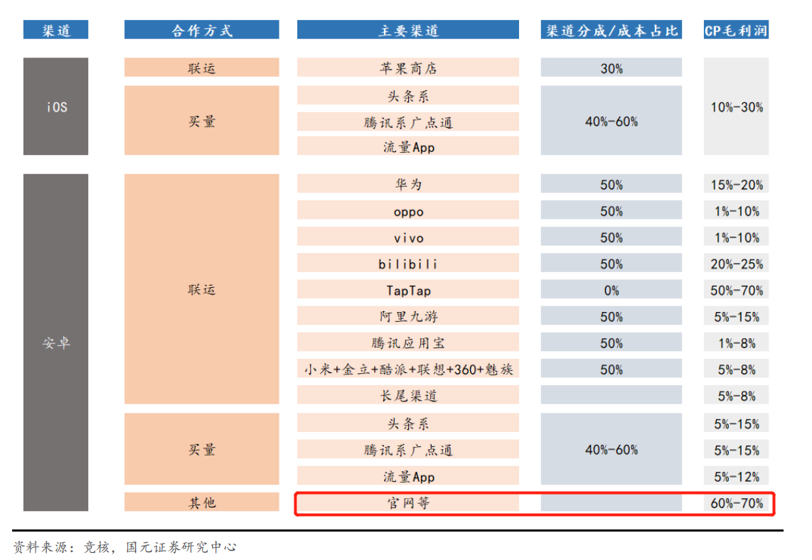 除去增加客户粘性外,社区app同时还能提供游戏下载服务,更是能绕开高额的渠道费用。根据资料显示,IOS和安卓不同的渠道费用占比在30%-50%不等。目前仅有TapTap和公司官方自运营的方式来规避渠道费用,用以提升毛利润。