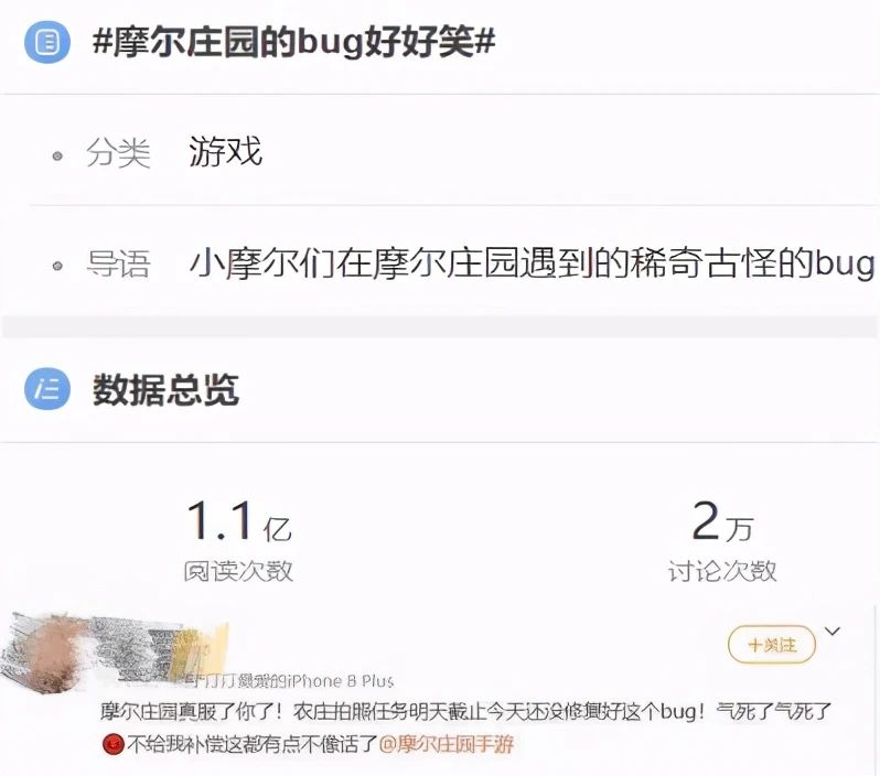 (《摩尔庄园》Bug话题界面,截图自微博话题)