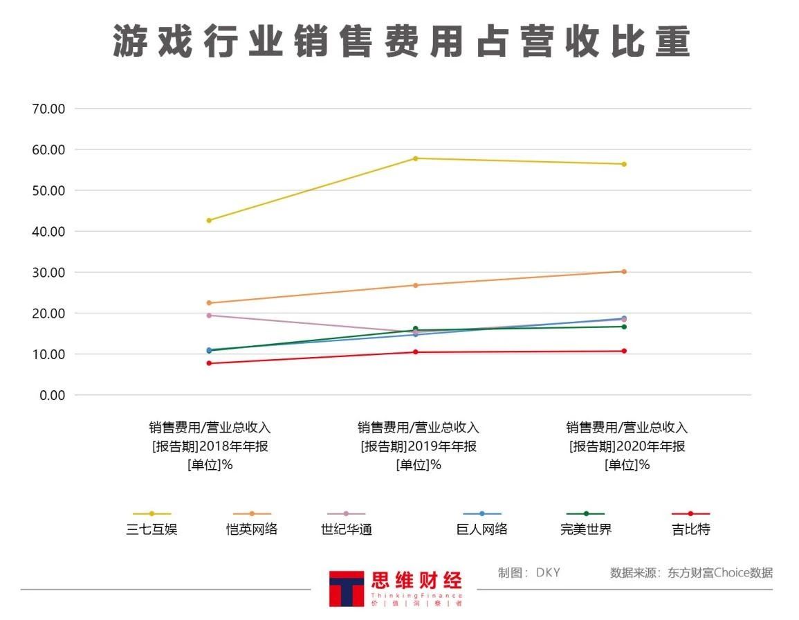 (游戏行业销售费用占整体营收比重,资料来源:各上市公司年度报告)