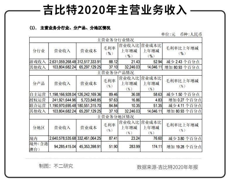 「不二研究」发现,在营收结构上,吉比特的收入主要来源于游戏,其中,自主运营收入12亿元,授权运营收入2.4亿元,联合运营收入为11.9亿元。