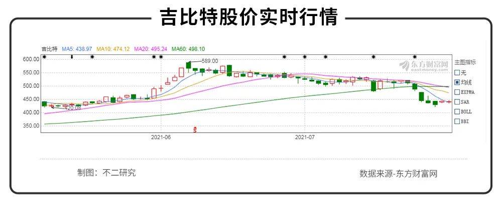 刚刚开幕的2021年ChinaJoy上,《摩尔庄园》作为重磅游戏,亮相首次参展的华为游戏中心。但是,即使是游戏界年度盛会ChinaJoy的利好消息,也没能大幅提振吉比特的股价。截止7月30日A股收盘,吉比特微跌后报收440.7元/股,与《摩尔庄园》开服后的高点589元/股相比,已经下跌25.2%。
