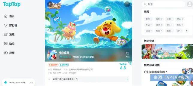 与《摩尔庄园》高涨的流水不同,其游戏口碑持续走低。上线前人们的期待值基本高于9分,历经一个月之后,目前在TapTap上的评分降为6.8分,oppo应用商城里更是低至2.7分,曾一度因千奇百怪的Bug上热搜。
