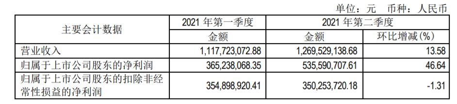 报告显示,吉比特第一季度的营业收入约为11.18亿元,净利润约为3.65亿元;第二季度的营业收入约为12.7亿元,净利润约为5.36亿元。同时,吉比特基本每股收益为12.54元,同比增长63.49%。
