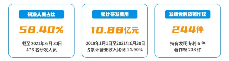 截至2021年6月30日,吉比特拥有研发人员476名,占员工总数的58.4%;在2019年、2020年及 2021年1-6 月研发费用分别为 3.32 亿元、4.31 亿元、3.25 亿元,累计研发费用10.88亿元,并持有发明专利6件,著作权238件。