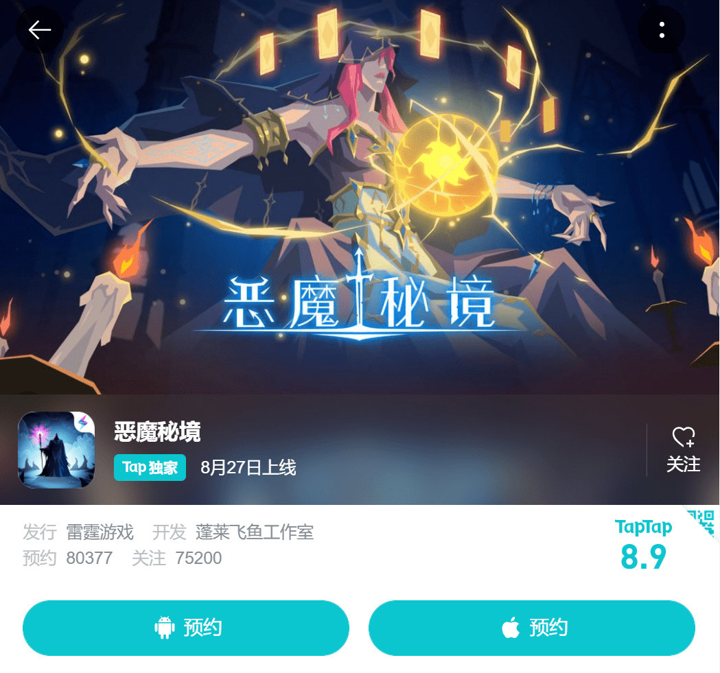 具体来看,预计在年内上线的有:《恶魔秘境》预计在今年8月27日公测,是一款将策略卡牌对战和Roguelike元素相结合的DBG游戏。该游戏目前在Taptap和好游快爆中评分颇为不错,前者8万人预约评分8.9;后者1.3万人预约评分8.8。