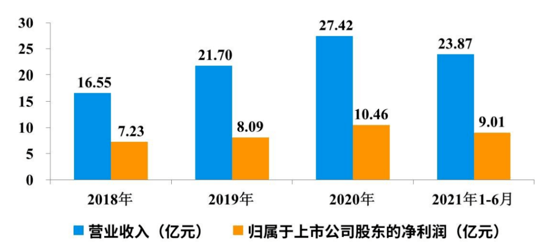 近几年,吉比特的营收整体情况较为稳健, 2018年至2021年上半年营收分别为:16.55亿元、21.70亿元、27.42亿元、23.87亿元。