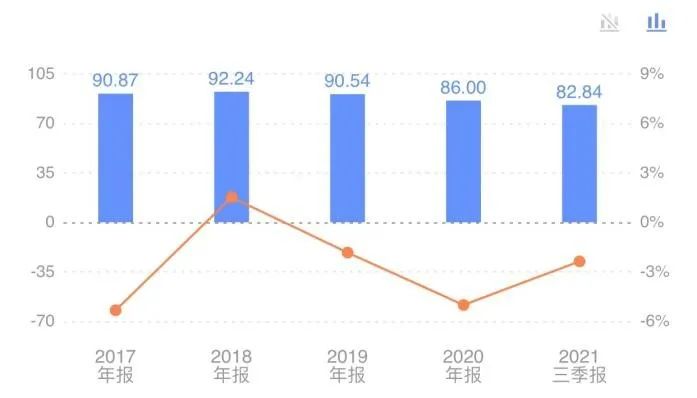 近年来,吉比特业绩实现稳定增长,公司营收从2019年约22亿元,上涨至2021年前三季度约35亿元,同比涨幅超70%;扣非净利润从2019年约7.5亿元,上涨至10亿元,同比增幅约43%。然而,其毛利率却有所下滑,从2019年的约91%,下滑至今年三季度约83%。