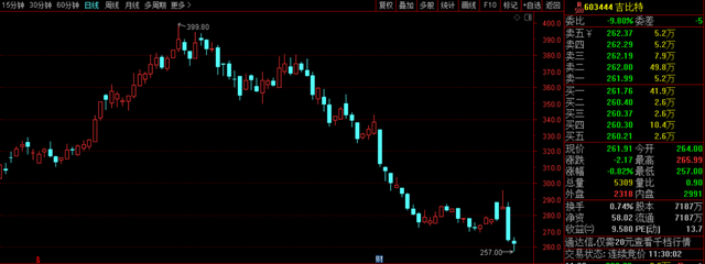 9月20日,吉比特开盘再度出现下跌,盘中一度跌逾2%,股价创两年来新低,截止午间收盘,吉比特跌0.8%,股价报于261.9元,总市值为188亿。