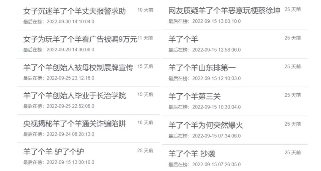 《羊了个羊》部分热搜话题(来源热搜时光机)