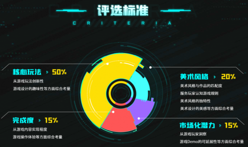 评选标准方面,大赛依旧把“核心玩法”作为最重要的考核标准,占比高达50%。“玩法”是游戏的核心,吉比特赛事开设至今,一直坚持趣味导向创作,期望通过设立和坚持此标准,让更多高校生铭记游戏的本质,创作出更多有趣的好游戏。