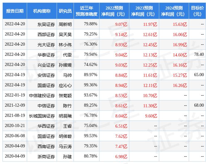最新盈利预测明细如下: