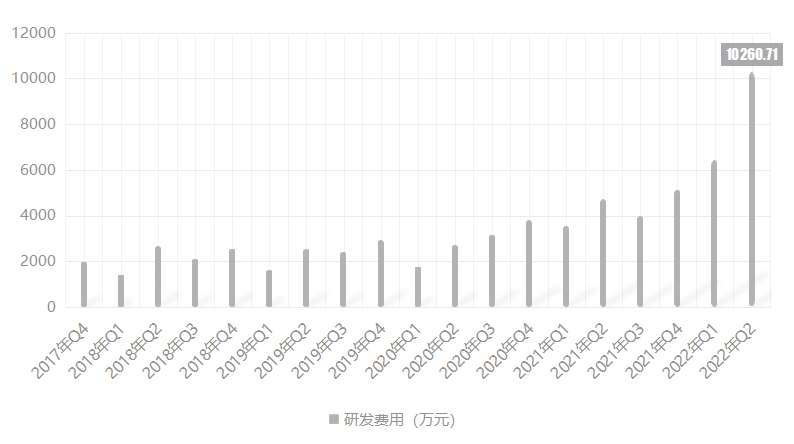 除了业绩备受关注外,作为一家医药公司,研发投入也是各界关注重点。记者注意到,九洲药业今年单季研发费用首次突破亿元。数据显示,2017年第四季度至2021年第三季度,九洲药业单季研发费用一直维持在5000万元以内的规模,而自2021年第四季度以来,公司单季研发费用持续攀升,分别达5125.40万元、6419.27万元和10260.71万元,目前已突破亿元规模。