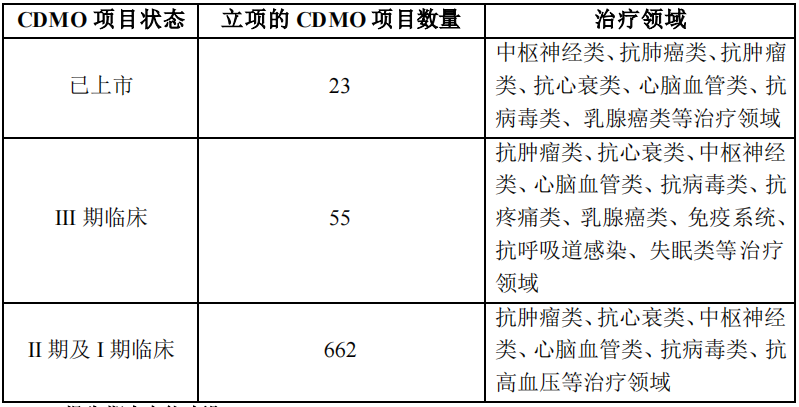 九洲药业CDMO项目的数量和状态数据来源:公司半年报