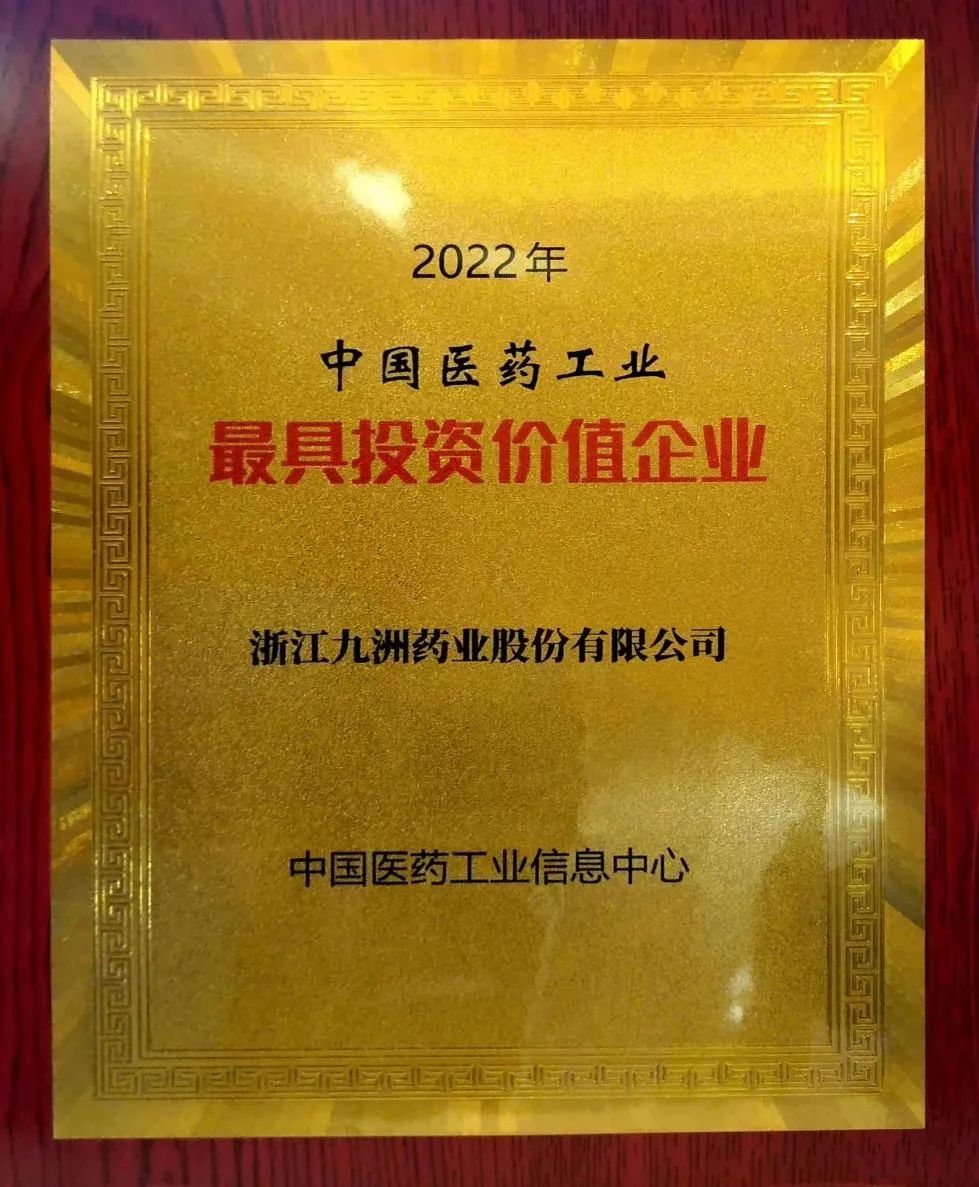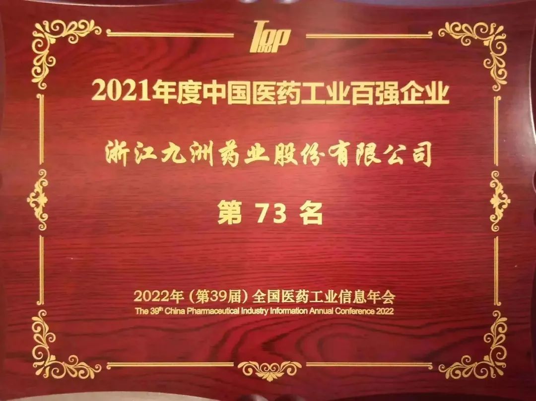 作为中国医药工业的优秀代表,百强企业是行业发展的风向标,更彰显着未来一段时期中国医药产业的主体发展趋势。12月18日,由中国医药工业信息中心在上海举办的2022年(第39届)全国医药工业信息年会上,“2021年度中国医药工业百强榜”“2022年中国医药工业最具投资价值企业”榜单正式发布。浙江九洲药业股份有限公司荣登两份榜单。