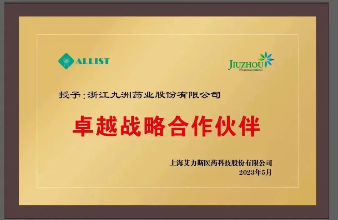 双方开展合作以来,九洲药业CDMO团队为艾力斯医药提供原料药工艺验证、临床试验用原料药生产、完善质量研究和CTD注册文件撰写等工作。并依托自身技术创新优势、完善的质量管理体系,积极开展伏美替尼原料药的国内注册申报相关服务工作,全力保障伏美替尼原料药的稳定供应。于2021年助力艾力斯1类创新药伏美替尼原料药成功获批上市。