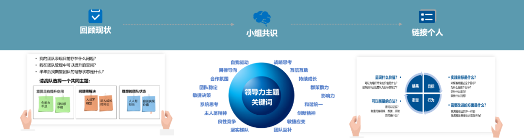 为了更好的转化学习成果,护航项目设置了实践任务,帮助学员从知到行,全面成长。学员通过“回顾现状-小组共识-链接个人”来制定团队实践课题和个人实践计划,在实践过程中,学员需应用所学课程知识,与上级沟通交流,并完成阶段反馈,专家老师针对学员反馈情况给与指导建议,帮助学员提升实践效果。