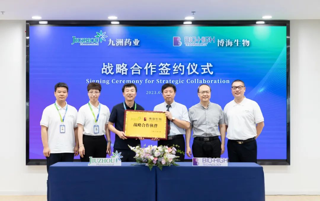 2023年7月21日,浙江九洲药业股份有限公司(以下简称“九洲药业”)与河北博海生物工程开发有限公司(以下简称“博海生物”)在瑞博苏州签署协议,就多肽药物及多肽疫苗等产品技术开发达成长期合作。