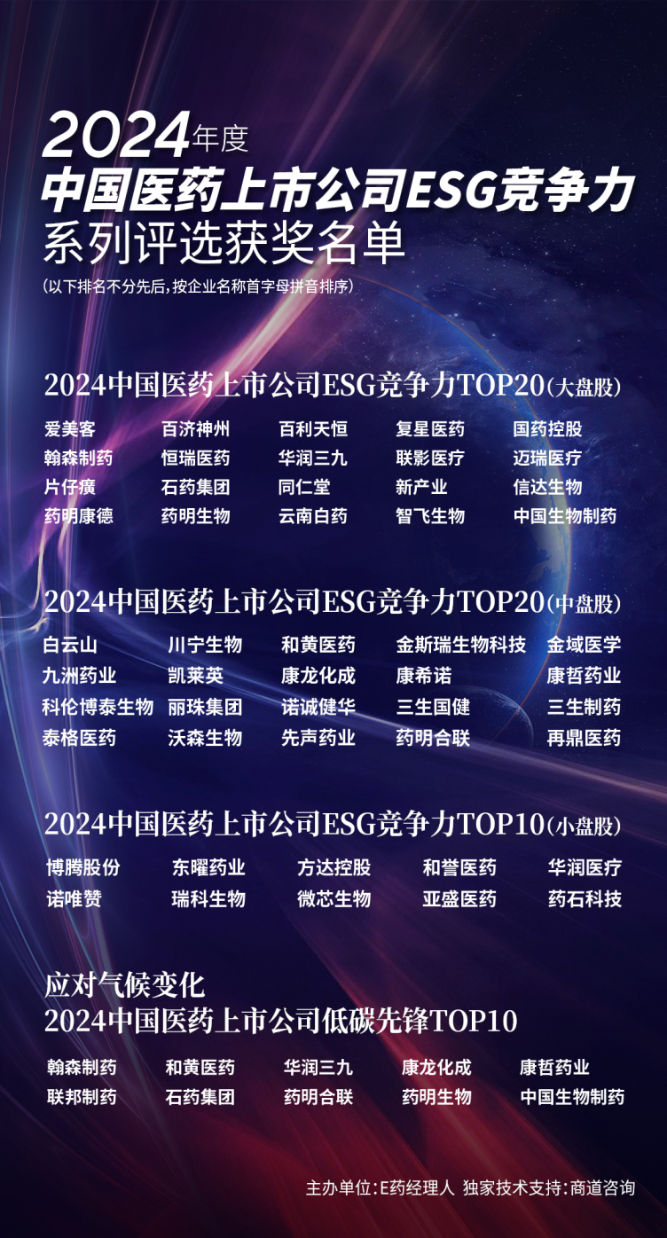 从2022年开始,E药经理人连续三年联合中国领先的企业社会责任领域独立咨询机构商道咨询,基于上市公司已公开发布的ESG报告,对全部港股和A股医药上市公司开展评估,共同评选出中国医药领域ESG管理实践权威榜单。