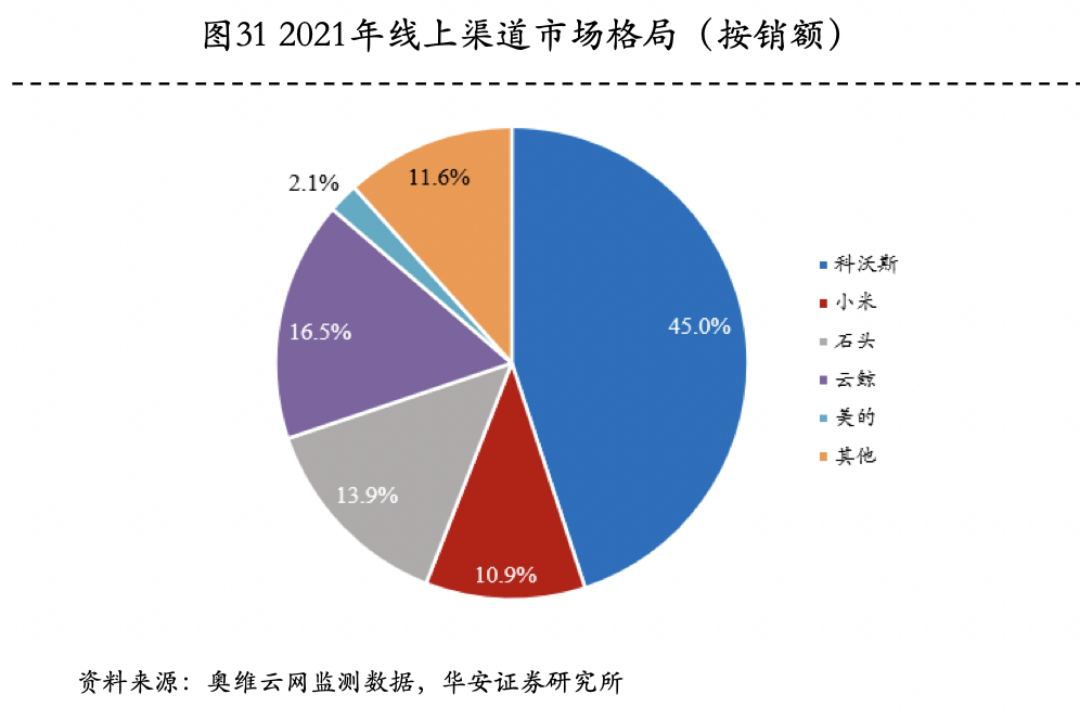 根据奥维云网数据显示,2022年5月,科沃斯扫地机器人线上销售额市占率38.9%,比去年降低了4.3个百分点,首次跌破40%。
