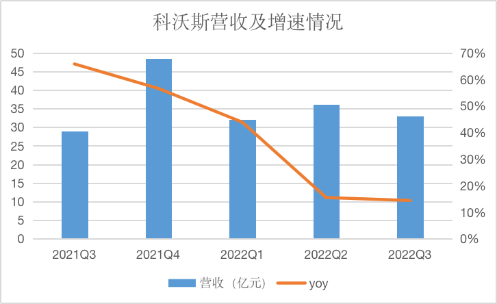 财报显示,科沃斯在2021第三季度到2022年第三季度这五个季度,营业收入分别为28.85亿元、48.42亿元、32.01亿元、36.21亿元、33.02亿元;同比增长率分别为65.82%、56.6%、43.9%、15.54%、14.44%。