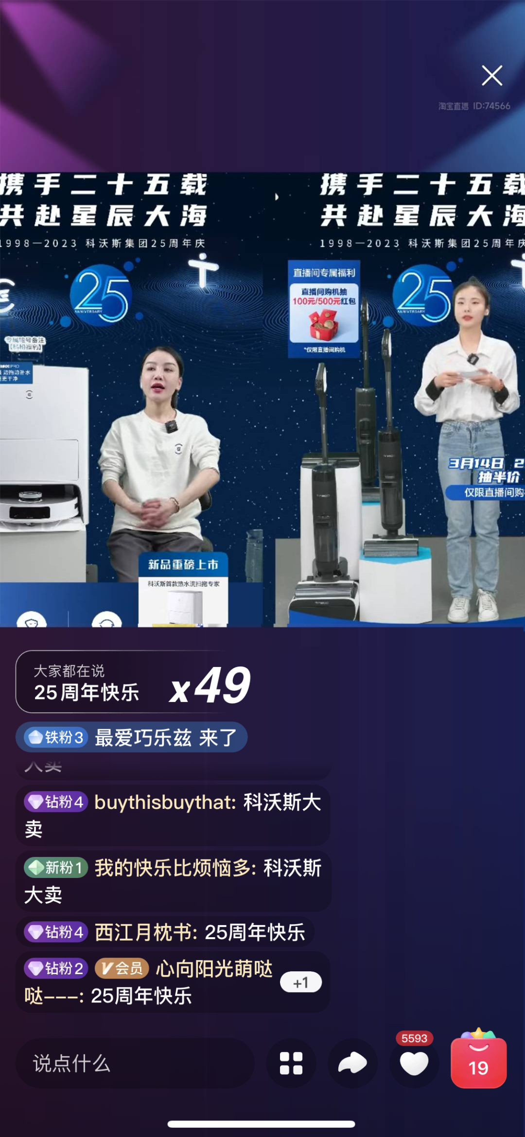 此次科沃斯就以品牌25周年作为出圈创意,以连麦自播的新模式为用户带来全新体验。