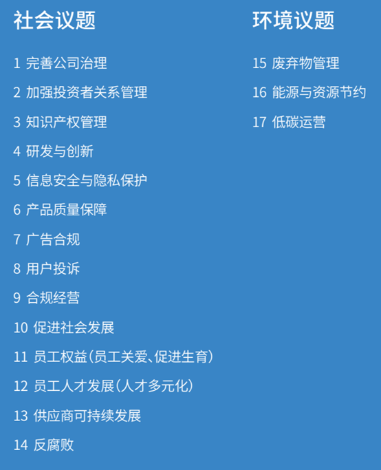在对ESG议题的实质性评估方面,科沃斯识别的高度重要议题包括:完善公司治理、研发与创新、信息安全与隐私保护、产品质量保障、合规经营、员工权益。此外,诸如投资者关系管理、知识产权管理、员工人才发展、反腐败、低碳运营等议题则被视为一般重要议题。