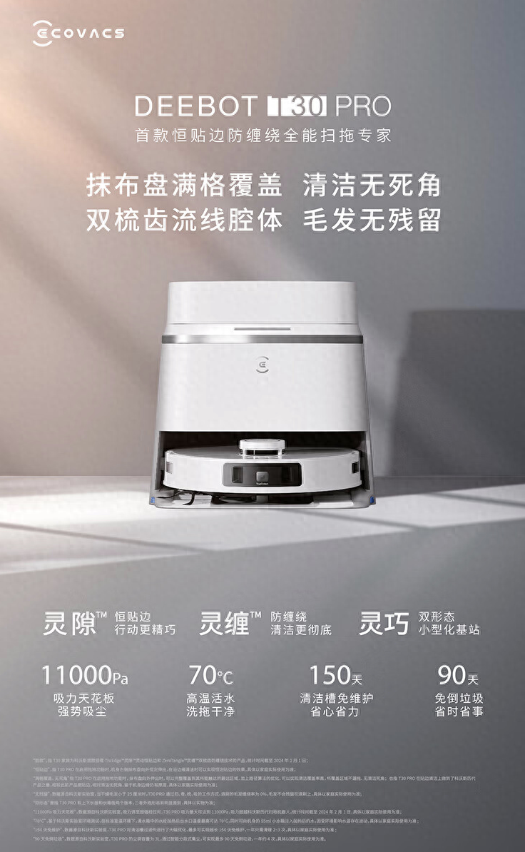据介绍,这款扫拖机器人配备恒贴边技术,号称扫拖覆盖率达到 100%、拖地覆盖率达到 99%,抹布到边距离小于 1mm;同时配备灵缠双梳齿防缠绕技术,号称清洁效率 99.4%。