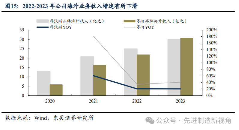 公司早在2012年就开始布局海外市场但早期海外渠道建设难度大,前期收效甚微,直至2021年公司海外营收出现较大幅度增长,科沃斯品牌/添可品牌营收同比分别增长60%/181%。但2022年海外业务营收增速开始回落,我们判断主要系公司直销渠道建设难度较大叠加海外产品更新不及时等因素导致海外市场拓展不力。
