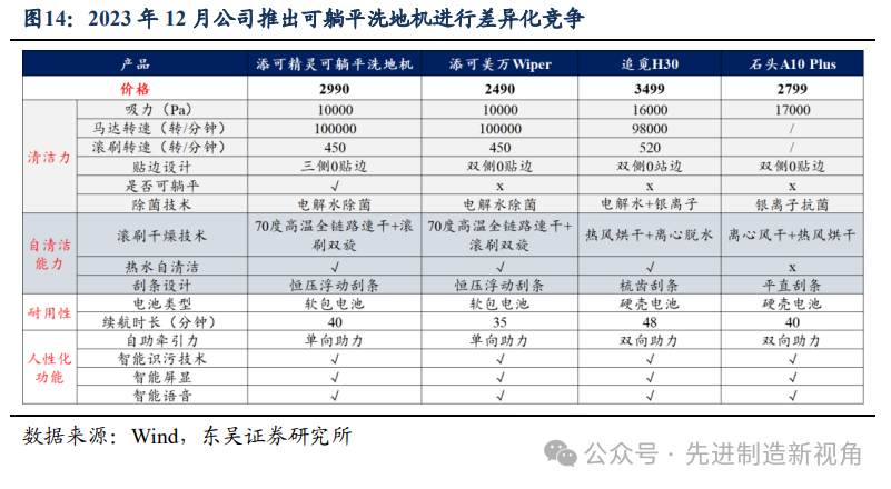 创新产品解决清洁痛点问题,差异化竞争占领市场制高点。针对洗地机行业竞争加剧问题,公司抓住核心矛盾对产品进行创新,于2023年12月推出可躺平洗地机。公司新产品首创高温全链速干技术,显著提升烘干效率和清洁效果,引领行业迈入“高温速干新纪元”。通过升级躺平探底洗地机产品,有效解决低矮空间的清洁痛点,为用户提供更为便捷高效的产品体验,取得了较好的市场和用户反馈。