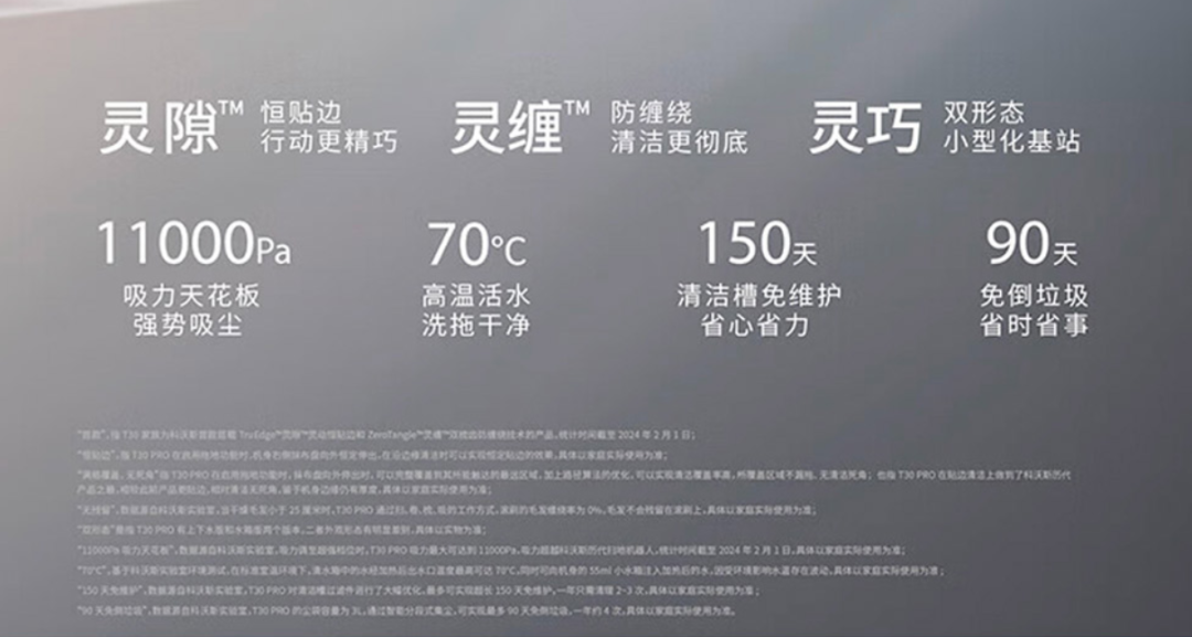 据科沃斯官方商城,截至查询日2025年5月6日,科沃斯“地宝T30 PRO(皓月银)”的商品详情中附上了多条注释,但字体或“模糊不清”。