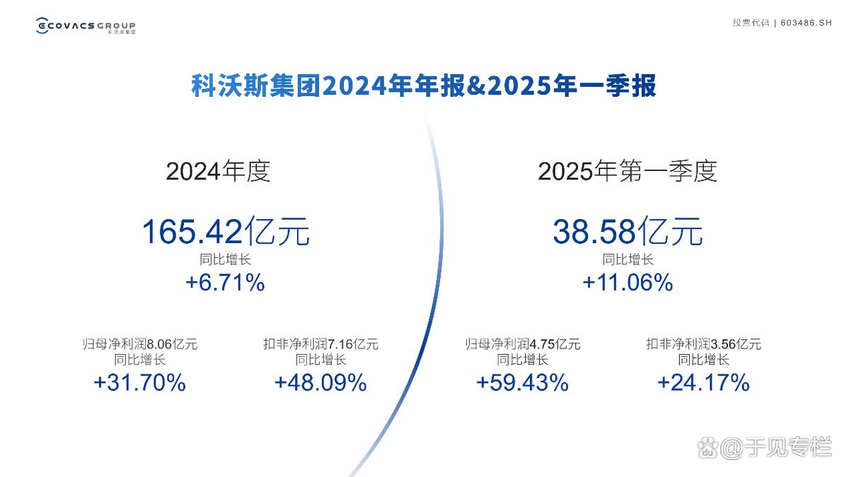财报数据显示,科沃斯全年营收165.42亿元,归母净利润同比增长31.70%,海外收入达71.12亿元,同比增长9.06%。而且,其2025年第一季度,依然保持着着营收和净利润双双增长的势头。