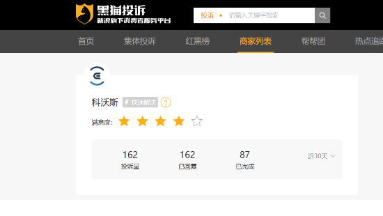乐居财经李兰 1月6日,据黑猫投诉平台,科沃斯近一个月新增投诉162条,已完成87条,投诉涉及产品质量等问题。
