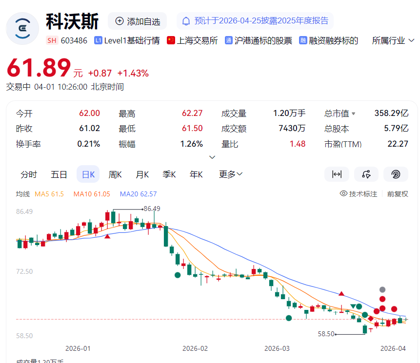 这份看似亮眼的成绩单,在资本市场却并未激起太大波澜。相反,科沃斯股价自2020年高点250.41元一路下跌至2026年3月底的62元左右,跌幅高达75%。这种财报与股价的严重背离,揭示了市场对这家昔日扫地机器人龙头的深层担忧。