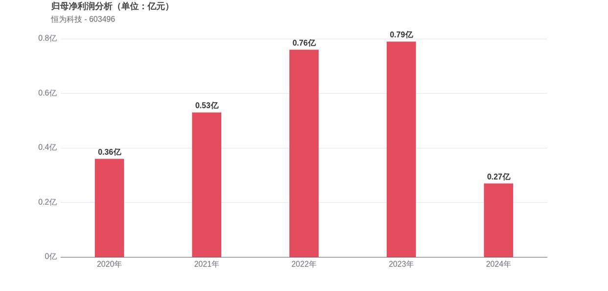 利润角度分析,2020年恒为科技实现归母净利润0.36亿元,2024年0.27亿元。利润水平未能跟上营收增长步伐,盈利质量有待提升。