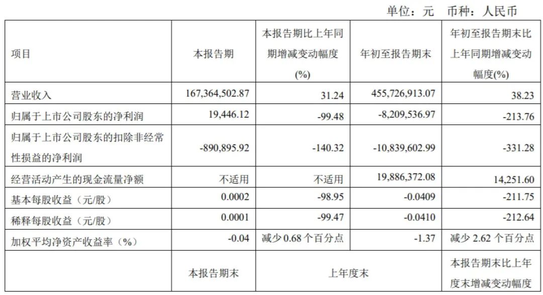 近日,翔港科技发布公告称,2021年第三季度实现营收1.67亿元,同比增31.24%;实现净利润1.94万元,同比降99.48%。