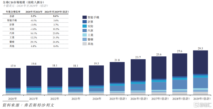 根据弗若斯特沙利文的资料,全球CIS市场由2020年的179亿美元增至2024年的195亿美元,年复合增长率为2.2%,预计将以8.6%的年复合增长率进一步扩大,并于2029年达到295亿美元。