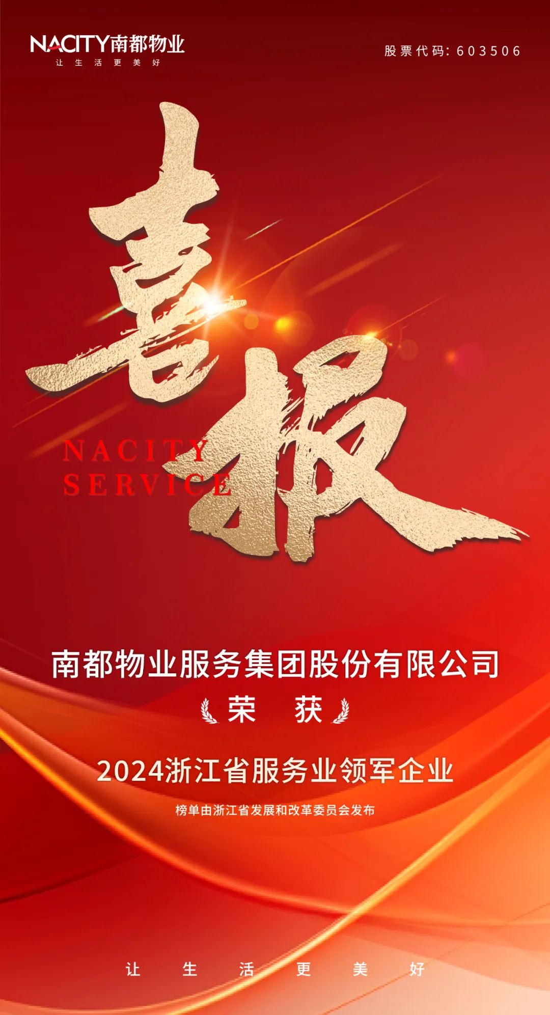 近日,浙江省发展和改革委员会正式公布《2024 年浙江省服务业领军企业名单》,在物业服务领域有5家企业脱颖而出,南都物业服务集团位列其中。