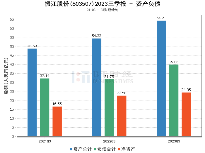 在资产负债方面,振江股份2023年三季报显示,公司总资产达到64.21亿元,较上年度末的54.85亿元增长了17.07%。负债合计为39.86亿元,相较于上年度末的31.95亿元增加了。净资产则从上年度末的22.89亿元增长到24.35亿元。资产负债率为62.08%,较上年度末的58.26%有所上升。商誉方面,报告期末为1.46亿元,较上年度末的8879.24万元有所增加。