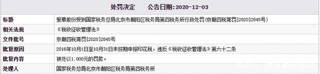 在公司总体向好发展的同时,爱慕股份也曾出现一些问题。2020年12月3日,爱慕股份受到国家税务总局北京市朝阳区税务局第四税务所的行政处罚。