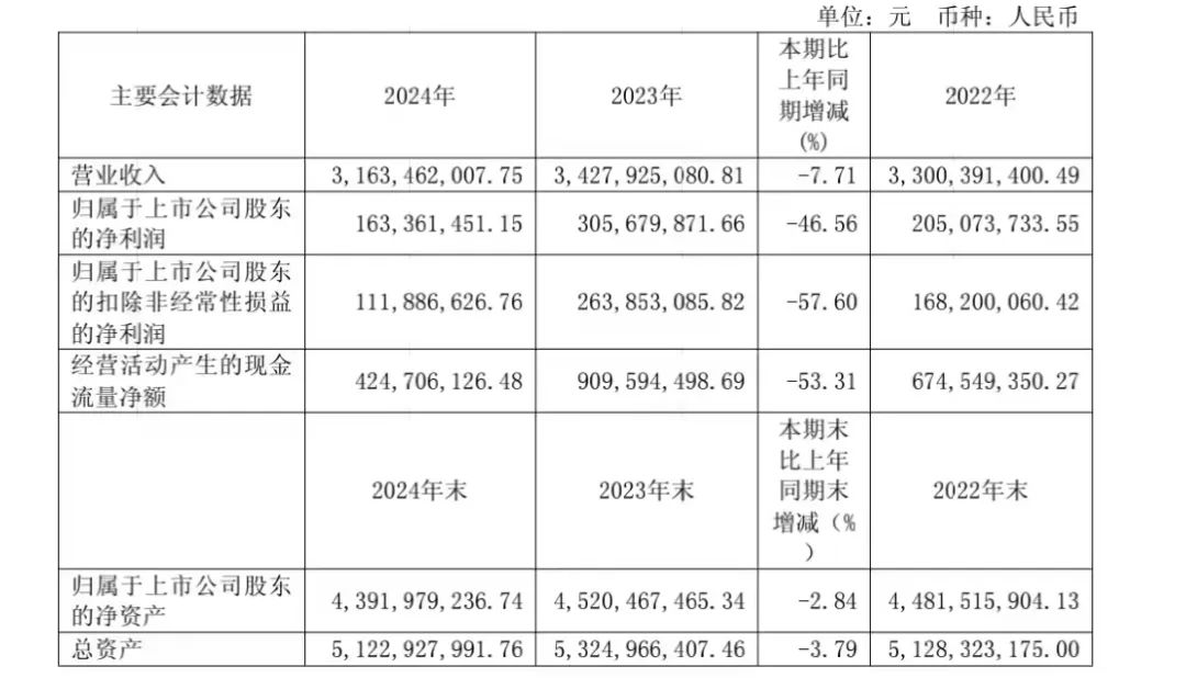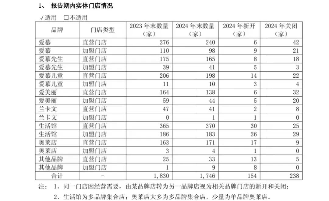 财报数据显示,2024年度,爱慕股份实现营收31.63亿元,较上年同期下降7.71%;归属上市公司股东净利润1.63亿元,同比下滑46.56%。