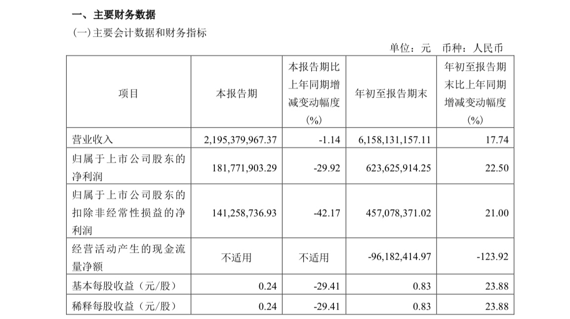 10月28日,欧普照明(603515.SH)发布三季报称,实现营业收入21.95亿元,同比下降1.14%;实现净利润1.82亿元,同比下降29.92%;实现扣非净利润1.41亿元,同比下降42.17%。