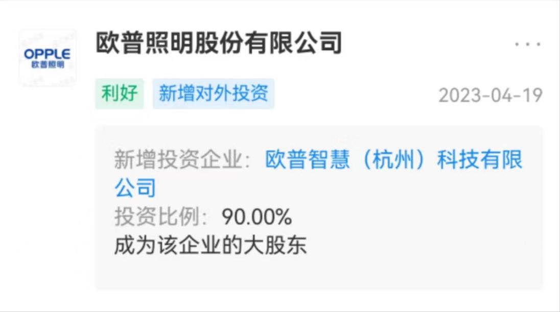 4月21日消息,欧普照明股份有限公司(以下简称“欧普照明”)新增一则对外投资。