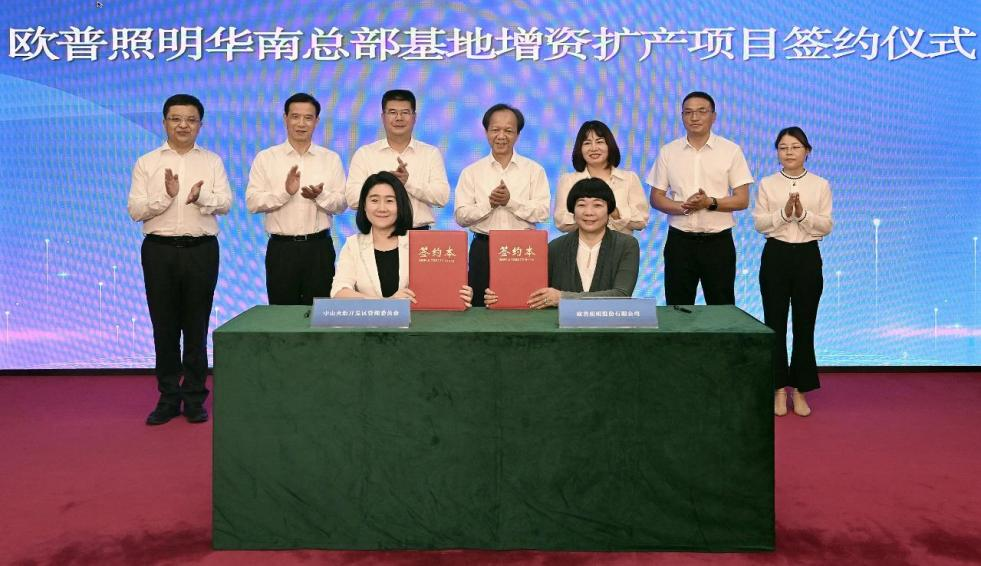 5月25日,欧普照明华南总部基地增资扩产签约仪式在中山举行。