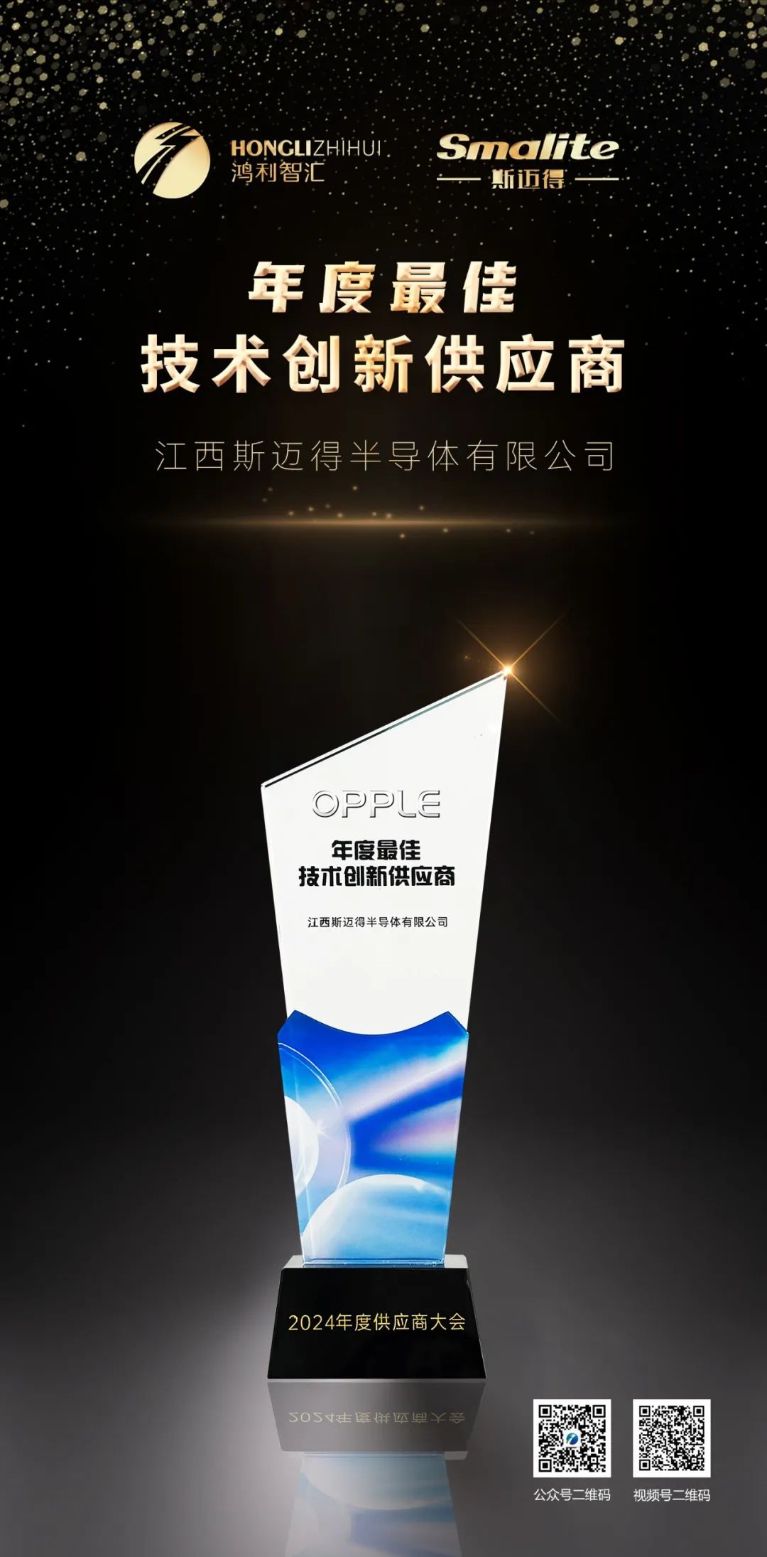 日前,欧普照明召开“永续经营展宏图,长期互信创卓越”为主题的供应商大会。鸿利智汇集团旗下江西斯迈得半导体有限公司(以下简称“斯迈得”)作为欧普照明优质供应商出席会议,并被评为年度最佳技术创新供应商。