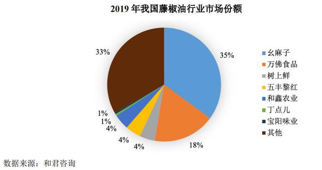 据和君咨询调研数据,2019年,幺麻子在中国藤椒油行业的市场占有率约为35%,排名第一。